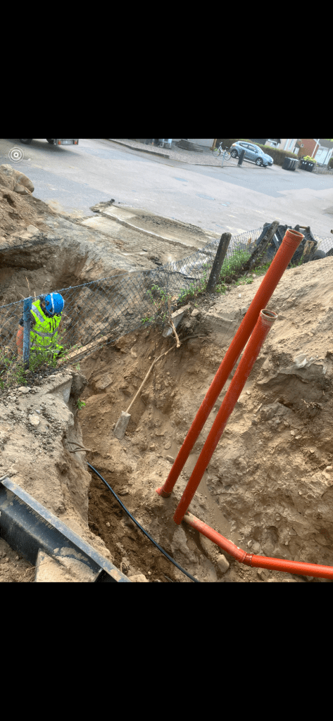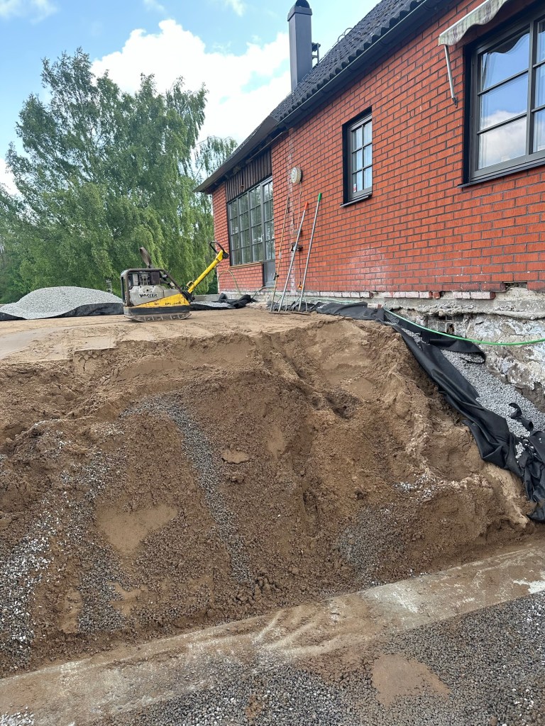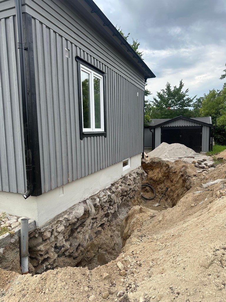 Arbete villa Här ordnade vi ny dränering runt villa samt byte av vatten, dagvatten och avlopp. augusti 10, 2025augusti 18, 2025